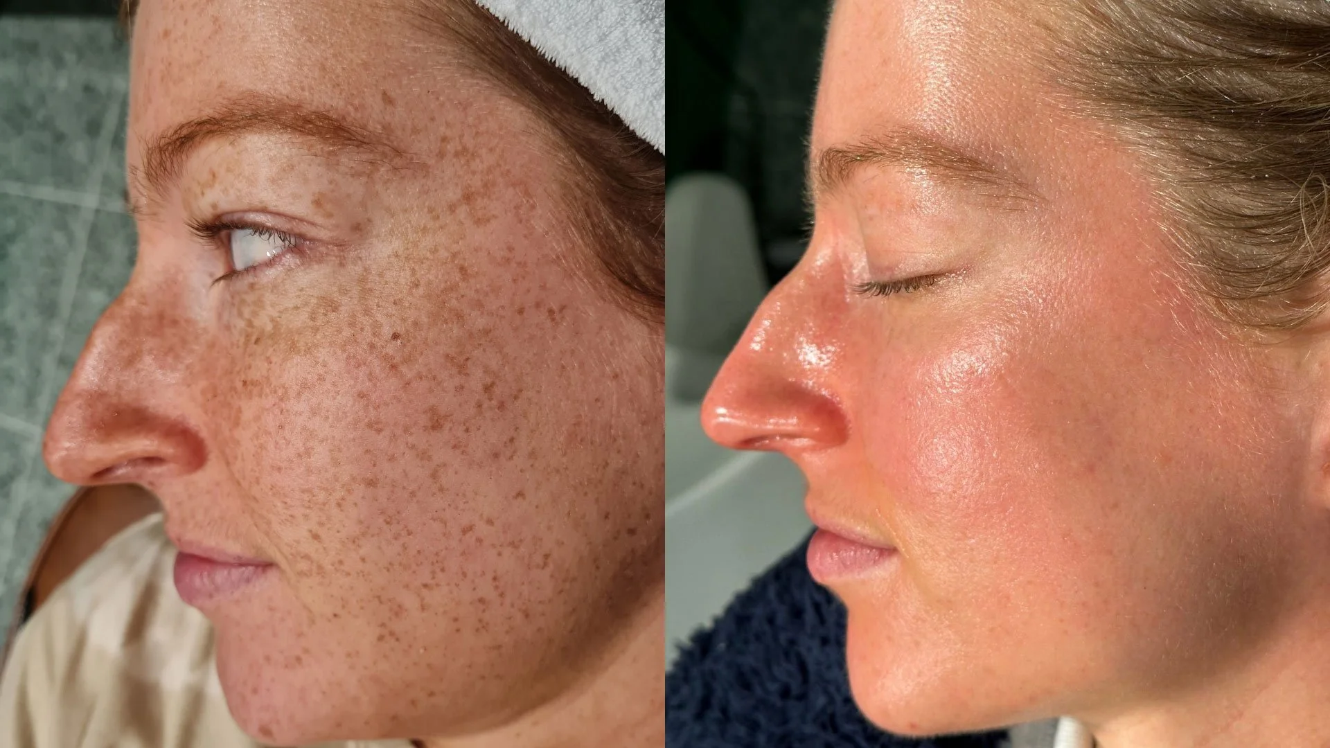 By week two, most redness subsides and the peeling slows. Pigmentation begins to lighten noticeably as new, even skin emerges. Continued use of the home care products will progressively enhance your results, with full improvement typically visible around 4–8 weeks after treatment.